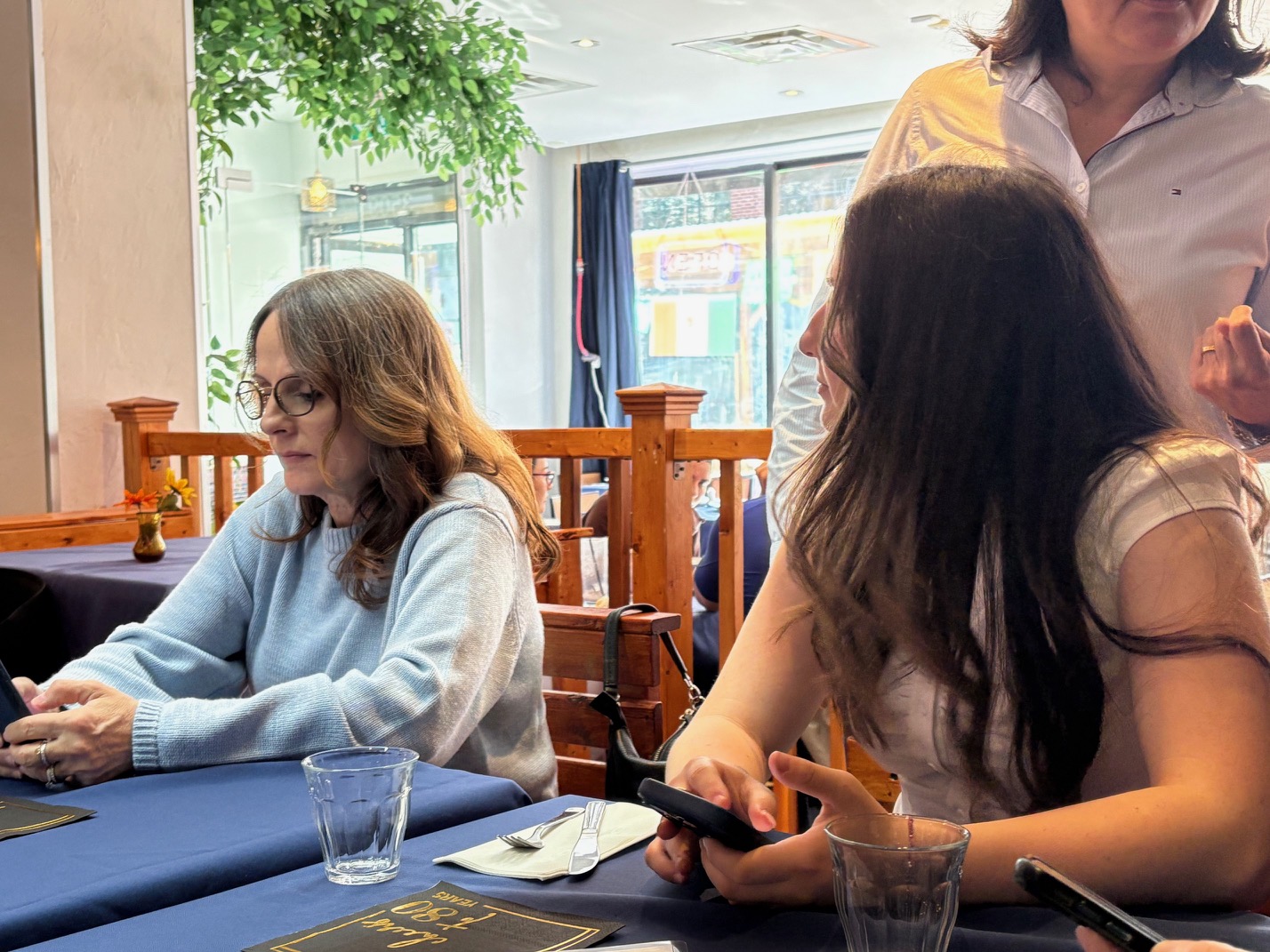 The highlights – oh, so many highlights, like the flaming sparkler millefeuille presented to me at the end of the meal. And the wait staff – including the owner herself – singing several verses of the Spanish version of a Happy Birthday song! And all my loved ones gathered around! Don’t let the phones in some of the pictures fool you – we were looking at the menu, trying to decide which delectable meal to order! (You scan a QR code with your phone, and then the menu is right there on your screen.)